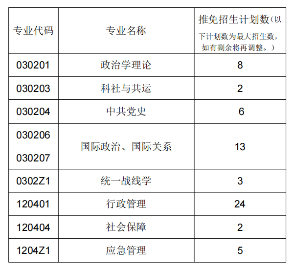 三、推免招生计划