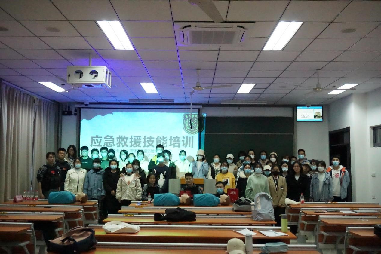 讲座伊始,张祎然简单介绍了星火亦燃志愿者服务队的创队及队伍救援经历,并分享了她的公益经验,强调CPR心肺复苏技术的实践必要性和重要性。接着,星火亦燃志愿者服务队培训员华龙向同学们讲解应急救援技能,邀请在场同学现场模拟海姆立克急救法(气道梗阻急救法),并模拟了多种不同情境下的胸部冲击法和自救法。