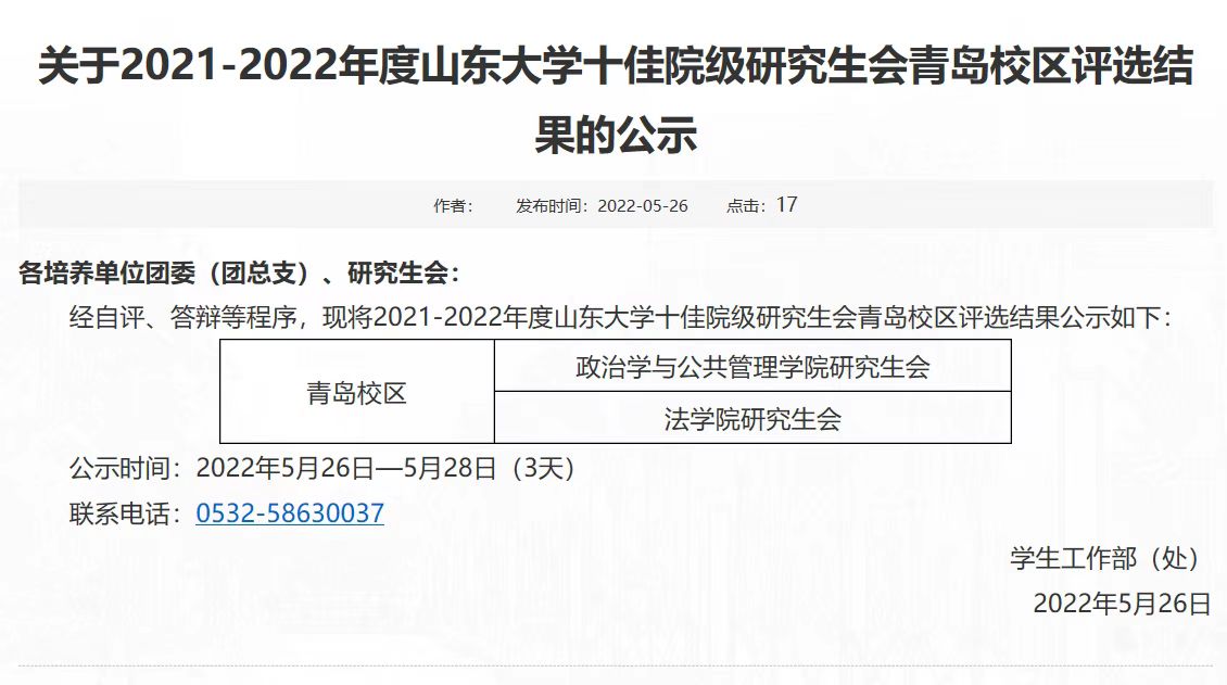 研究生会凭借卓有成效的扎实工作和各部门的通力合作,最终以青岛校区第一名的成绩荣获2021-2022年度“av视频