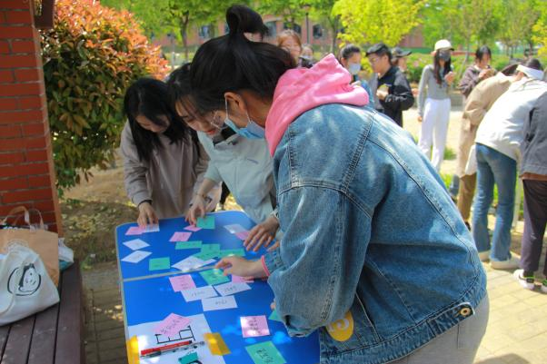 在中心花园趣味竞赛环节中,设置“寻忆之旅”和“心有灵犀”两个项目。队员们全员上场,通力合作,在规定时间内都出彩地完成了比赛,同学们热情高涨,比赛现场气氛热烈。