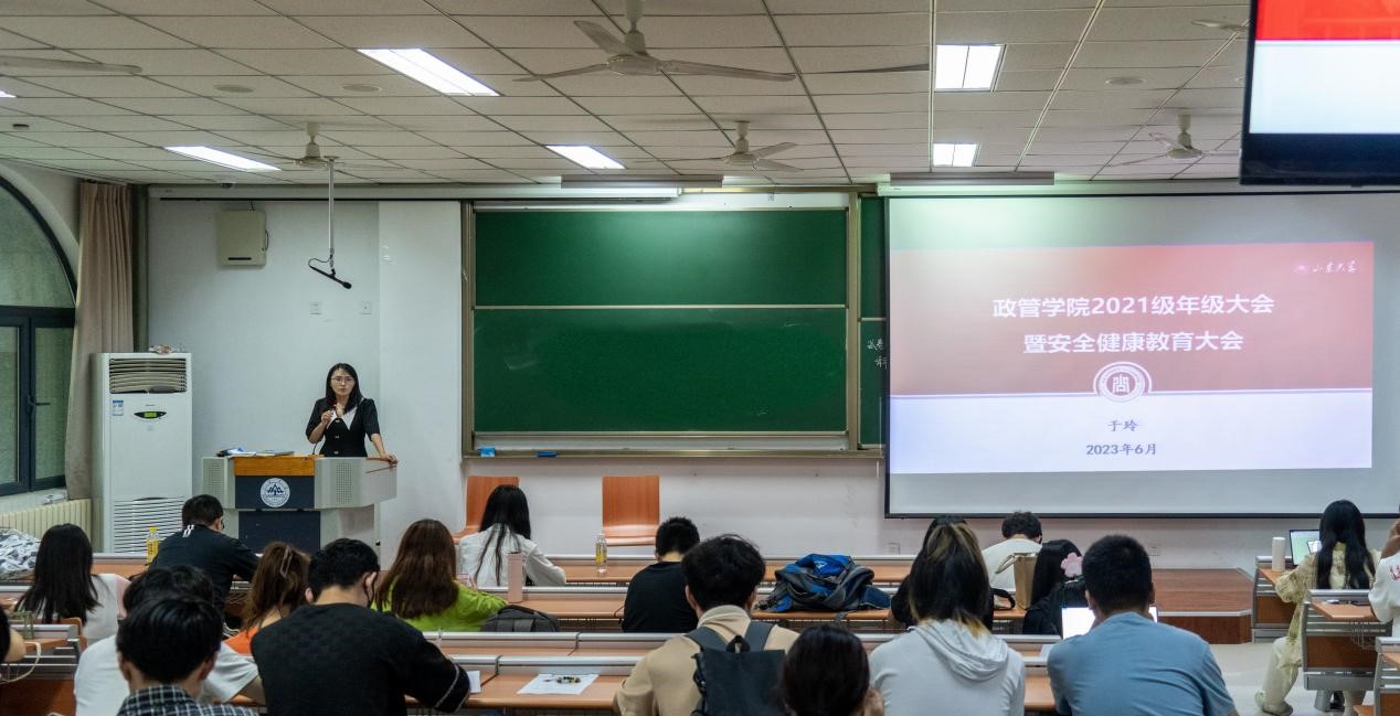 2021级本科生于6月28日上午在振声苑召开年级大会暨安全健康教育大会。2021级本科生辅导员于玲主持并开展相关专题教育,2021级全体本科生参会。本次会议主要围绕暑期放假安排、安全健康教育、暑期社会实践工作等内容展开。
