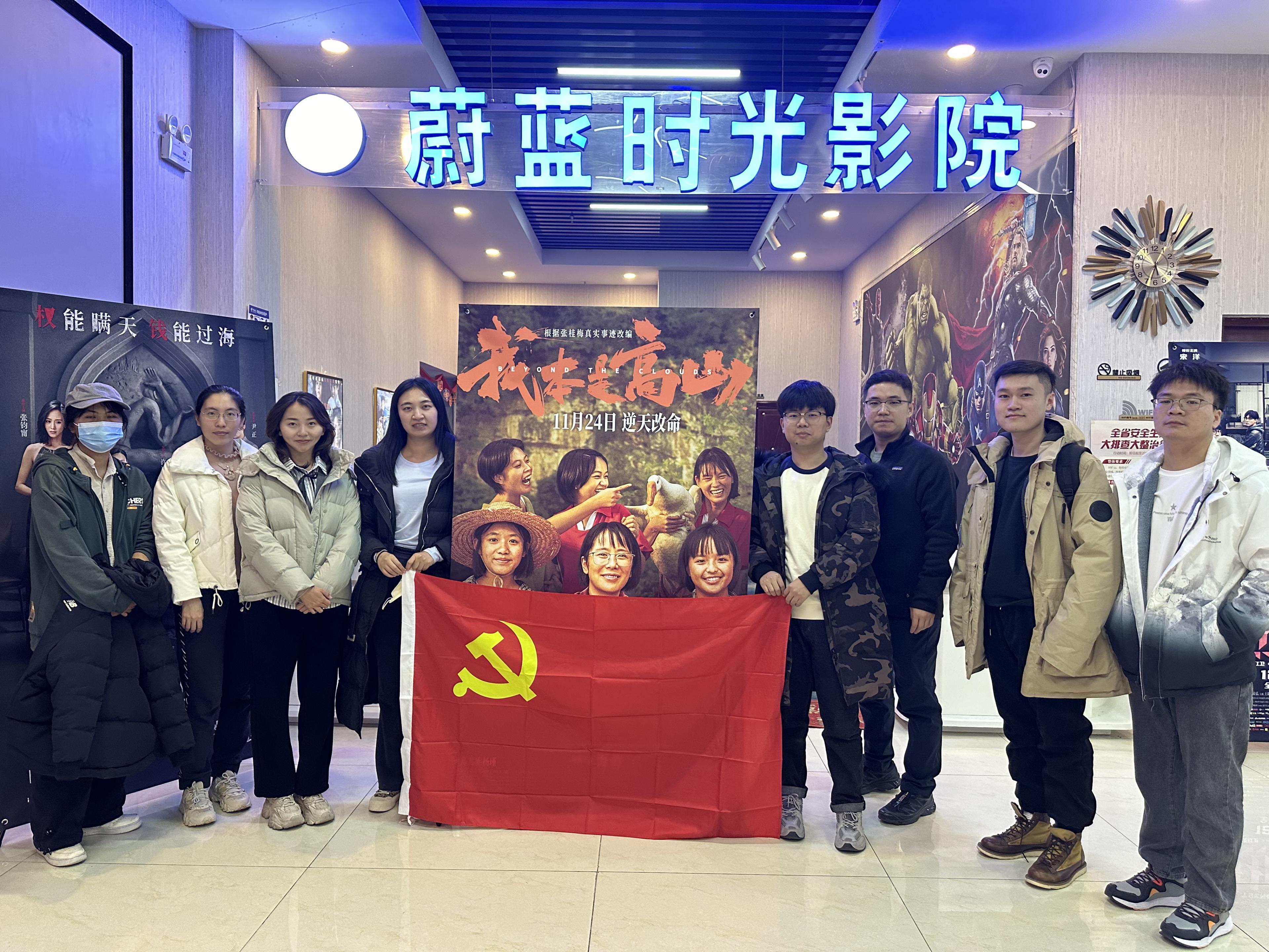主题党日活动在蔚蓝时光影院进行,影片内容为以“七一勋章”获得者、中共二十大代表、全国妇联副主席(兼)、丽江华坪女子高级中学校长的张桂梅同志为原型的电影《我本是高山》。电影讲述了心怀大爱的基层教育工作者忠诚践行习近平总书记关于教育扶贫的重要精神,用爱心和智慧点亮万千乡村女孩人生梦想的感人故事。党员青年为坚韧不拔、无私奉献的精神所深深感动。