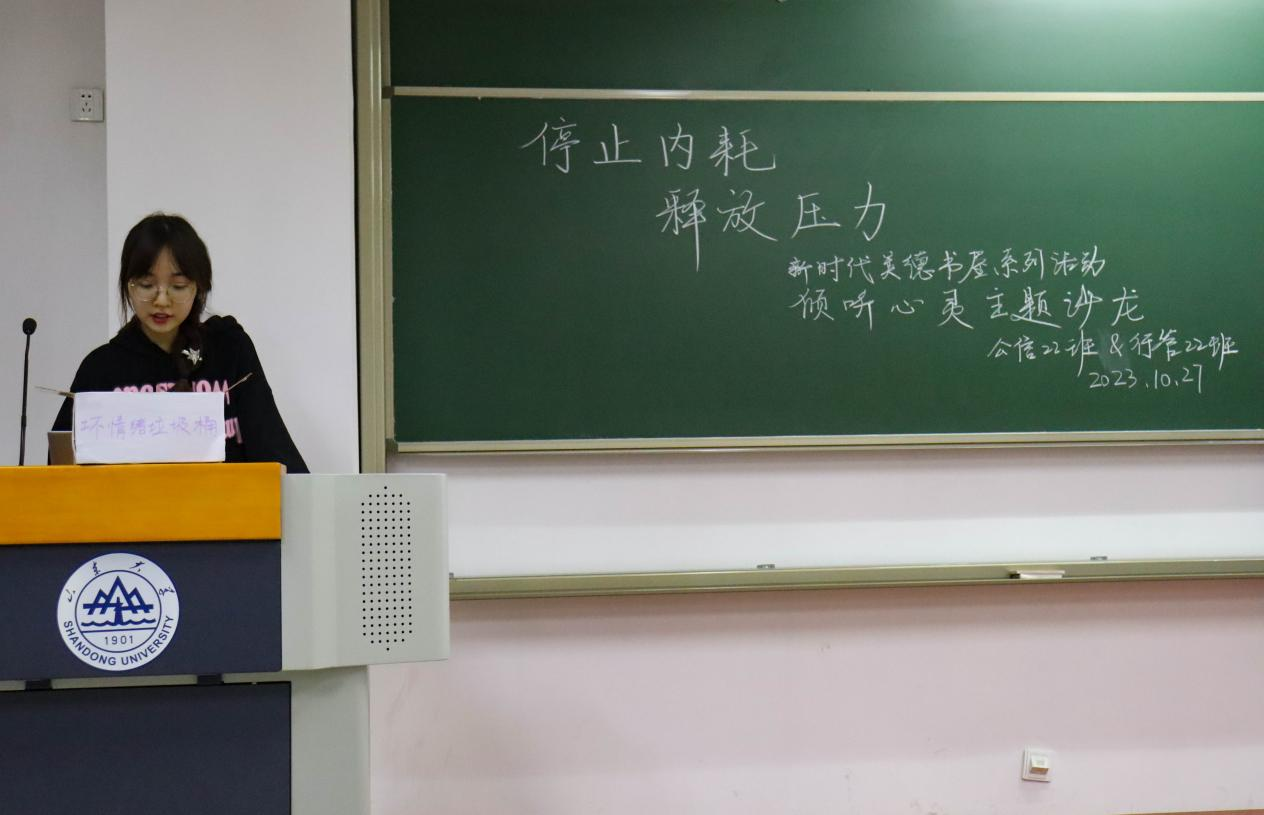 22级公信班与行管班于振声苑共同举办以“停止内耗 释放压力”为主题的心理沙龙活动,本次沙龙活动由公信班心理委员陈如意与行管班心理委员钟灵毓秀共同主持。