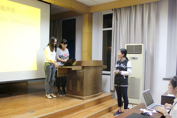调研权益部和办公室在洪家楼校区联合举办“回顾光辉历程,践行两学一做”党史知识竞赛初赛部分。