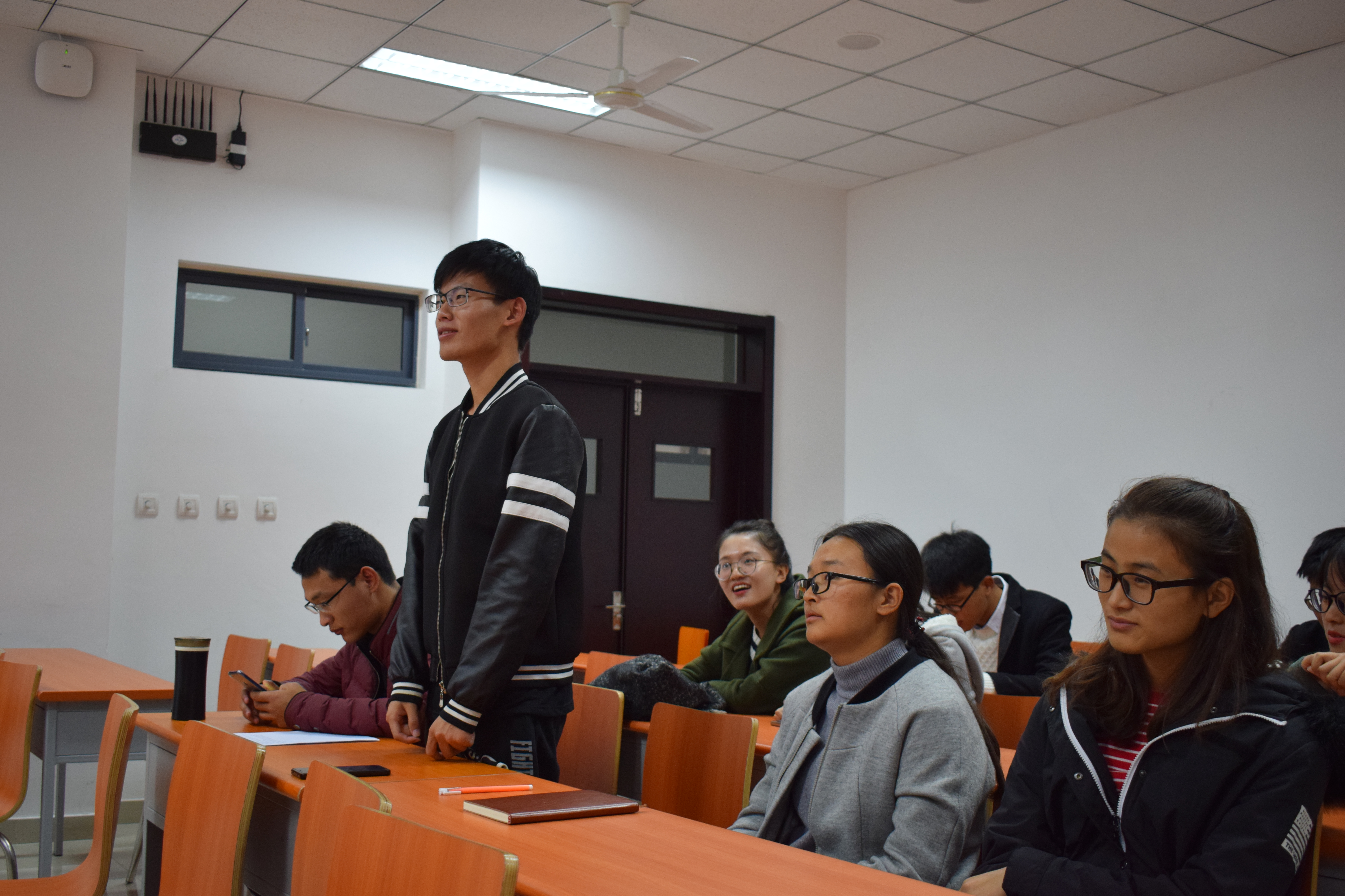 首先,班长刘宏羽结合党的十九大报告中习近平总书记关于青年的论断:青年兴则国家兴,青年强则国家强。青年一代有理想、有本领、有担当,国家就有前途,民族就有希望。同学们要牢记自己的使命与担当,使命重在担当,实干铸就伟业,在生活中学习中结合自己对党的十九大精神的理解,结合本专业的特点,培养自己的家国情怀和专业思维,提升自己的能力。同时,当前我们面对的思潮更加纷繁、我们面对的选择更加多元,为此我们应该坚定中国梦伟大理想,克服生活中的许多诱惑,为中华民族的伟大复兴而奋斗。