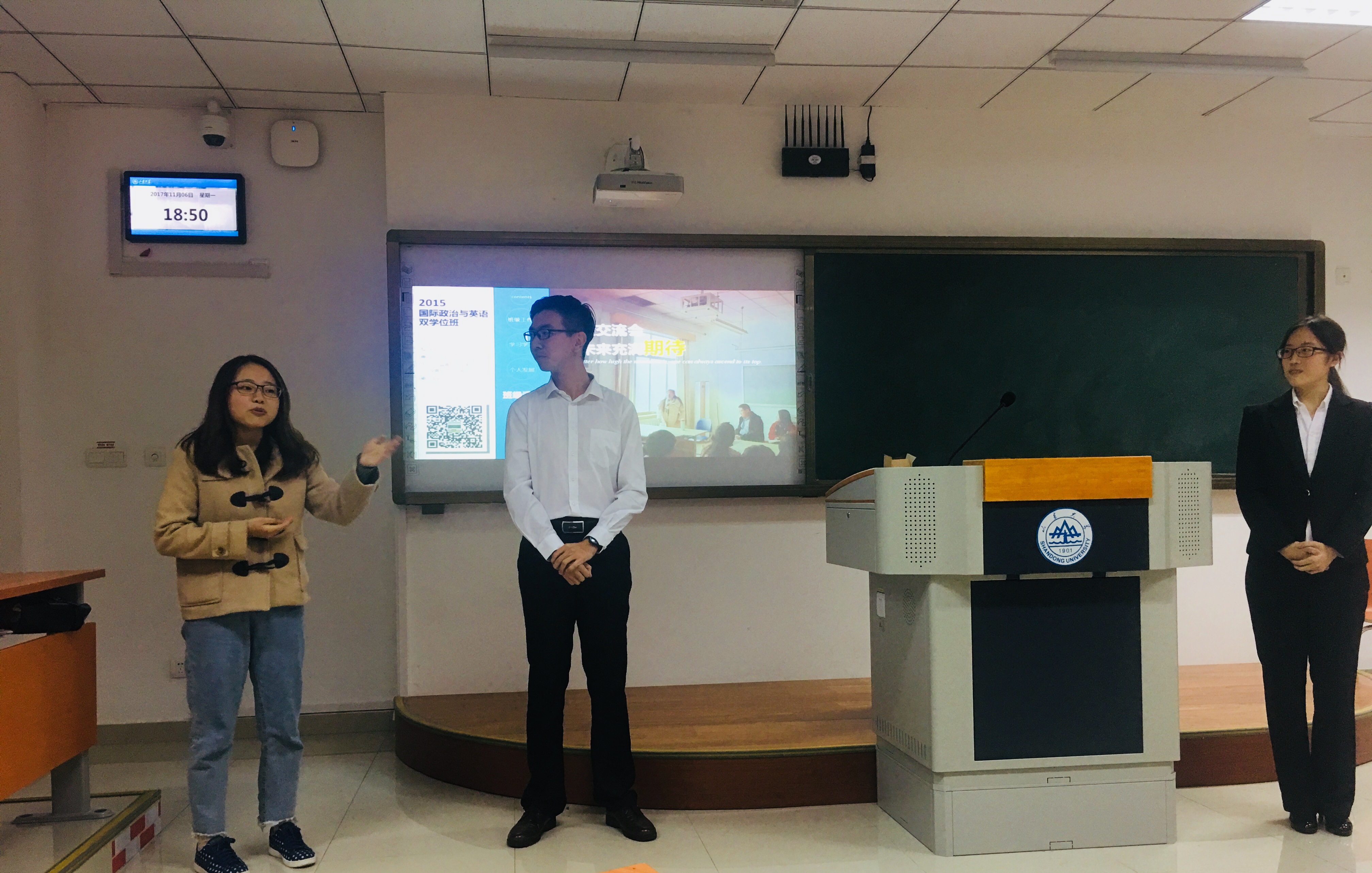 晚上18:30,考评会正式开始。各个班级按照抽签顺序依次上台进行展示。各班级分别从班级制度建设、学术活动、社会实践、文体活动和班级优秀学子等方面展示班级风采。每个班级都采取了丰富多彩的展示形式来体现班级风貌。15级国英班采用新闻联播式演出来向大家展示国英班积极向上的班级风貌,16级行管和15级公管均以视频的形式生动形象地显示了同学及老师对本班级的评价和期望,各班同学妙语连珠、神采飞扬,既展示了班级在志愿服务、班级活动、党团建设方面的累累硕果,又体现了班级团结一致、互助友爱的精神风貌,各个班级都努力将最好的一面在今晚展示出来。场下评委们认真聆听,细致考量着每个班级的工作成果,力求做到公平公正的打分。