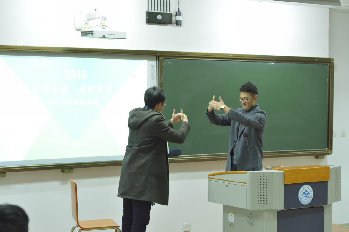 晚上18:30,考评会正式开始。每个班级按照抽签顺序依次上台进行展示,以PPT、视频或表演等丰富多彩的形式从班级情况、学术创新、志愿服务、文体活动、优秀学子等全方面展现了班级风采。“有公德、善勤学、勇创新、善笃行”的15级政行,“聚是一团火,散是满天心”的15级科社,作为毕业班的他们展现了各自的班级特色及就业去向。“行涉政路,管济民心”的16级行管,打造“家”文化的16级政科,用隆中对的表演展示班级风貌的16级公管,用朗诵展现班级每个学子特点的16级国政,作为中坚力量的16级展现了各班丰硕的工作成果。17级公管和政治也创新开展了各具特色的活动。各个班级展现了一学年取得的累累硕果,体现了班级团结友爱争先的精神风貌。评委们在场下仔细聆听每个班级的汇报,力求做到公平公正的打分。