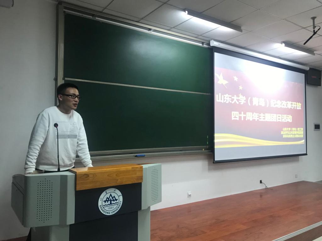 刘宏伟同学也分享了自己的阅读感悟,他表示,“改革开放四十年,我感受最深的是以人为本的治国战略逐渐落实到位”,“人民的生活水平越来越高,人民的日子越过越幸福,是改革开放带领中国翻开了新篇章,进入了新时代”。