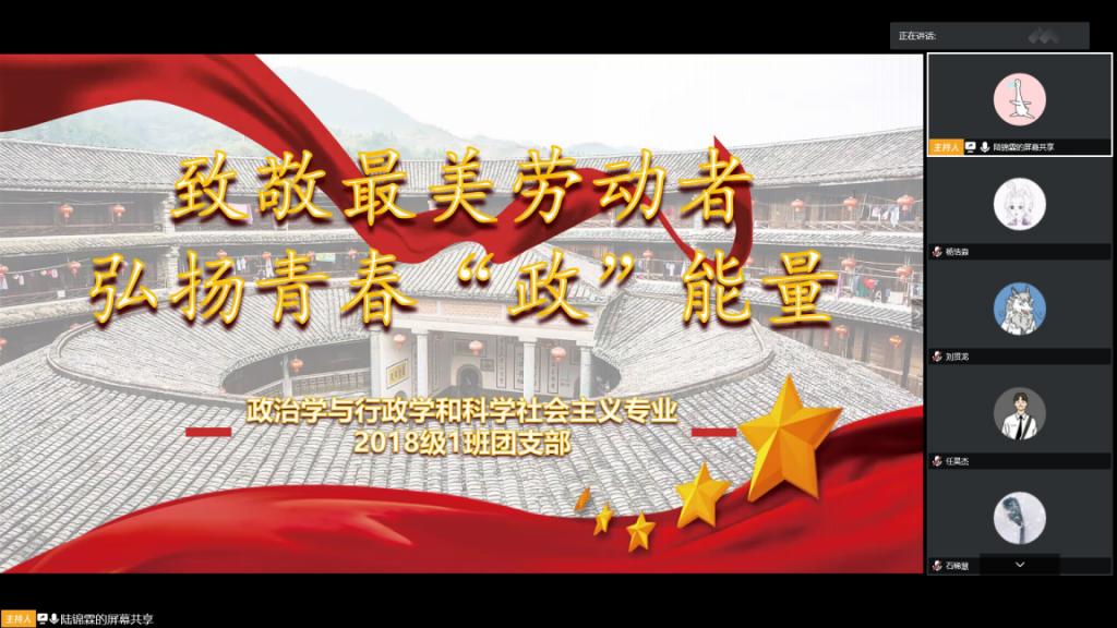 为组织支部成员学习抗“疫”过程中各行各业涌现出的无私劳动者,进一步激励支部成员传承新时代劳动精神,加强对支部成员的劳动教育,2018级政科班本科团支部开展了“向最美劳动者致敬”主题团日活动。