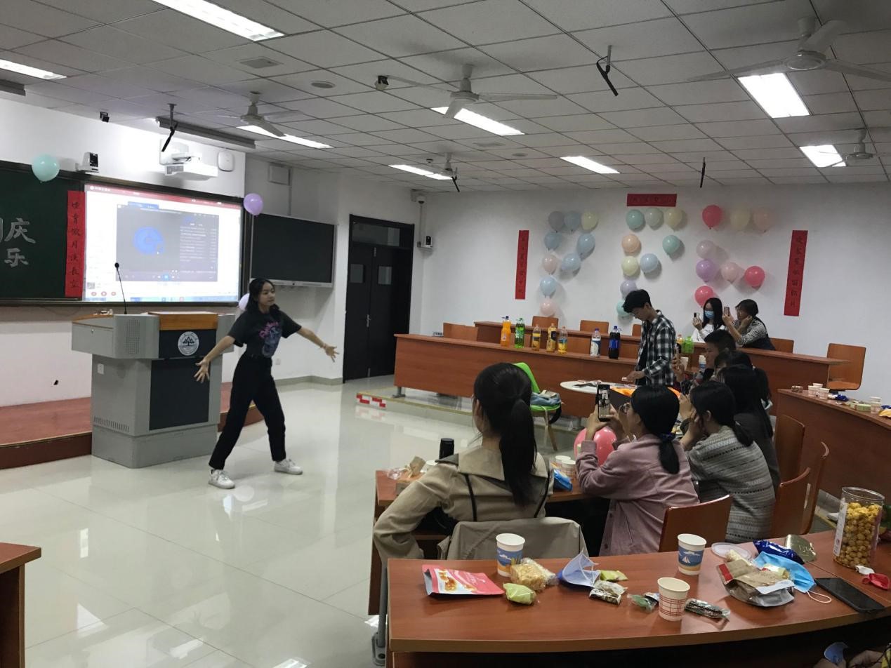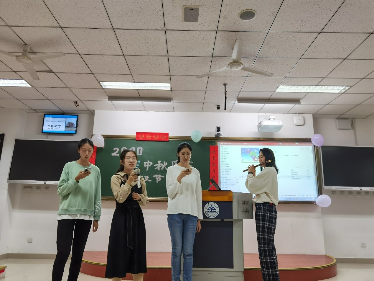 同学们为本次班会,准备了丰富多彩的才艺节目。首先,谢柏旸、张亦诺、吕文韬、吕资昀、刘文心和朱绍鲜六位同学给大家带来了诗朗诵《亲吻祖国》,在他们深情的声音里,我们听到了新一代山大学子的责任担当和对祖国母亲的深爱。我们的同学来自祖国的大江南北,虽然无法归家,但是“隔千里兮共明月”,即使远隔千里,我们仰望的也是同一轮明月。所以,刘文心,吕资昀,赵佳如和李佳馨四位同学为大家带来了《大鱼》和《但愿人长久》两首歌,让我们的思绪穿越千年,体悟东坡先生的那一份达观。接着,李成林同学带我们进入了一个魔幻的世界,让我们领略了魔法的神秘,见证了奇迹的发生。最后,刘奕和同学的一曲How you like it挥洒了生命的美丽,闪耀着青春的活力,让同学们感受到了现代舞的魅力。