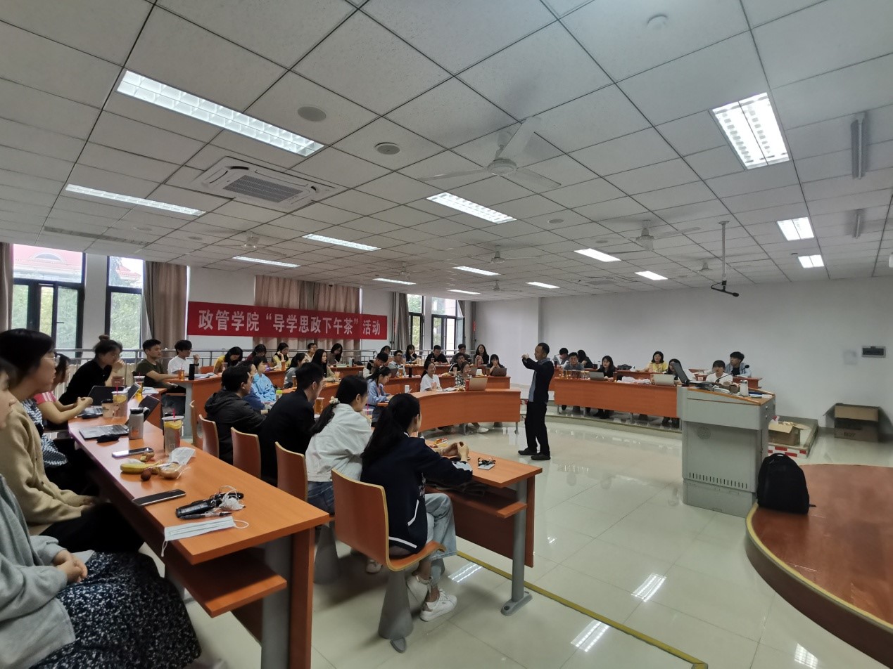 李汉烨老师在主持过程中介绍了“导学思政”的具体内涵和重要意义,强调导学关系存在于导师与学生的双向互动过程中,是研究生阶段核心的社会关系,深刻影响研究生求学的过程。“导学思政下午茶”的开展,是导学之间交流形式的创新,也是学校和学院立足导学关系这个基本载体,充分挖掘和发挥导学互动中思政元素教育促进作用的契机,在下午茶这种相对轻松愉悦的互动场景中最终实现共识凝聚和价值认同。