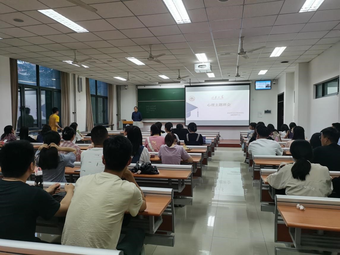 本次活动结合学院研究生毕业年级的实际情况,以线下主题班会、线上同步直播的方式开展。班会伊始,学院2018级研究生辅导员李汉烨介绍了毕业生在毕业季和就业之初在心理方面出现的普遍问题,强调心理健康的重要性,并介绍有效的自我发现和调节措施,帮助同学们以积极健康的心态顺利度过毕业季,完成从校园到社会的适应性过渡。
