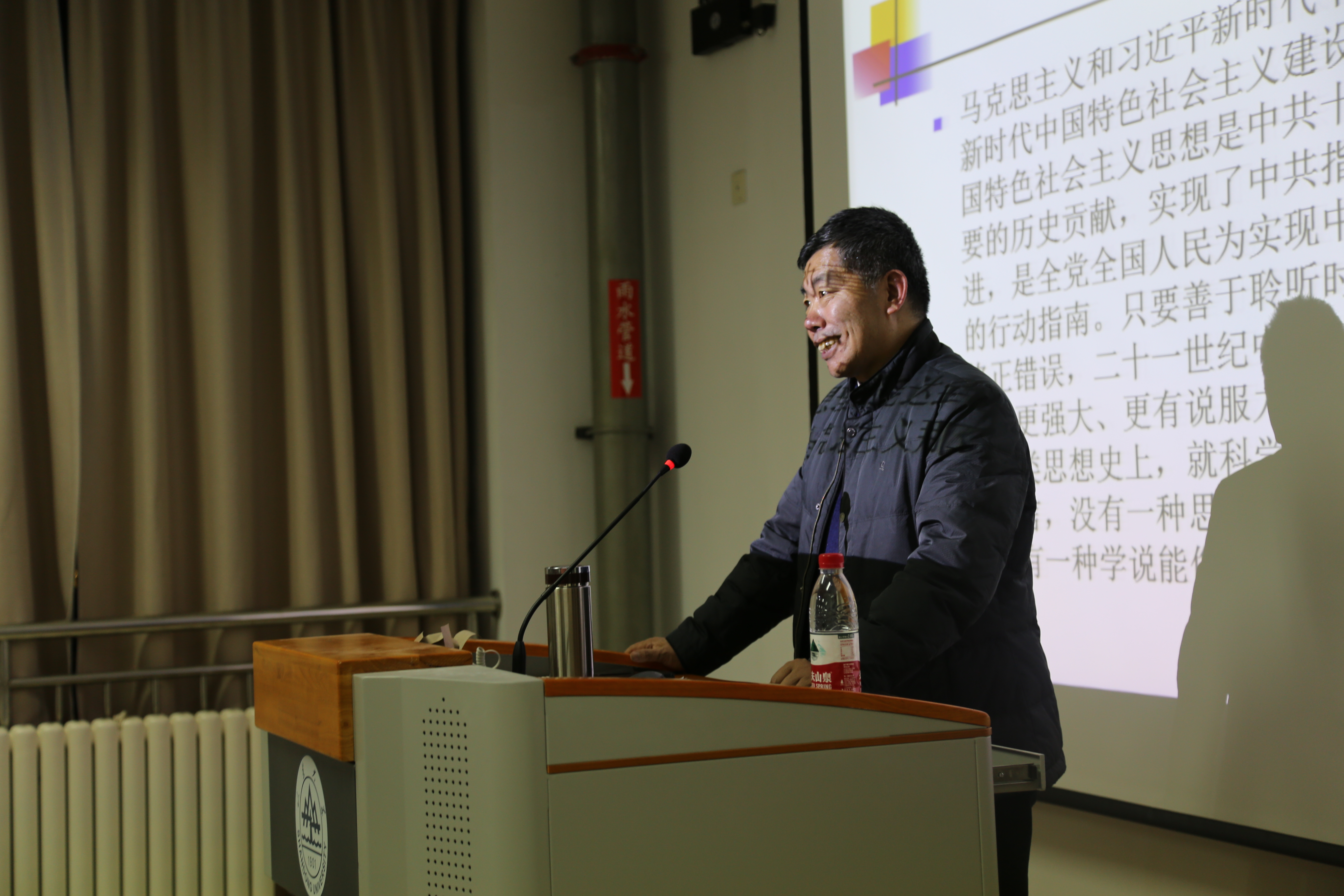 此次讲座主讲人为崔桂田老师,他从四个方面阐述中国特色社会主义的时代光辉,即新时代中国特色社会主义的生成逻辑、新时代中国特色社会主义的基本内涵、新时代中国特色社会主义的世界意义与新时代中国特色社会主义的比较优势。