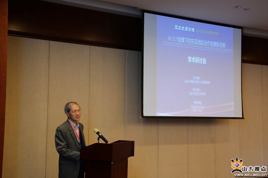 亚太研究所举办的“RCEP背景下的东亚地区合作发展新态势”学术研讨会在青岛海泉湾酒店举行。教育部国别区域研究工作秘书处执行主任温冰,青岛校区党工委副书记郭邦礼,av视频
