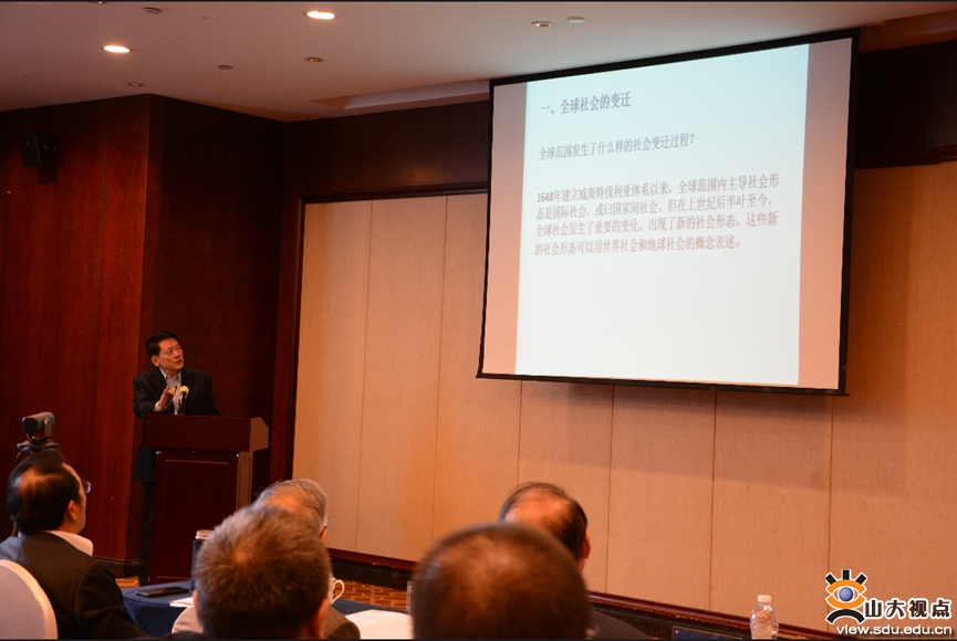 讲席教授、外交学院原院长秦亚青以“全球社会变迁:基于中美关系视角的解释”为题,从关系理论为基点进一步深入阐释了国际社会、世界社会、地球社会的三种概念,他指出,当前人类世界是这种三种社会的叠加形态,并且构成权力关系、共生关系、利益关系三者的有机统一。