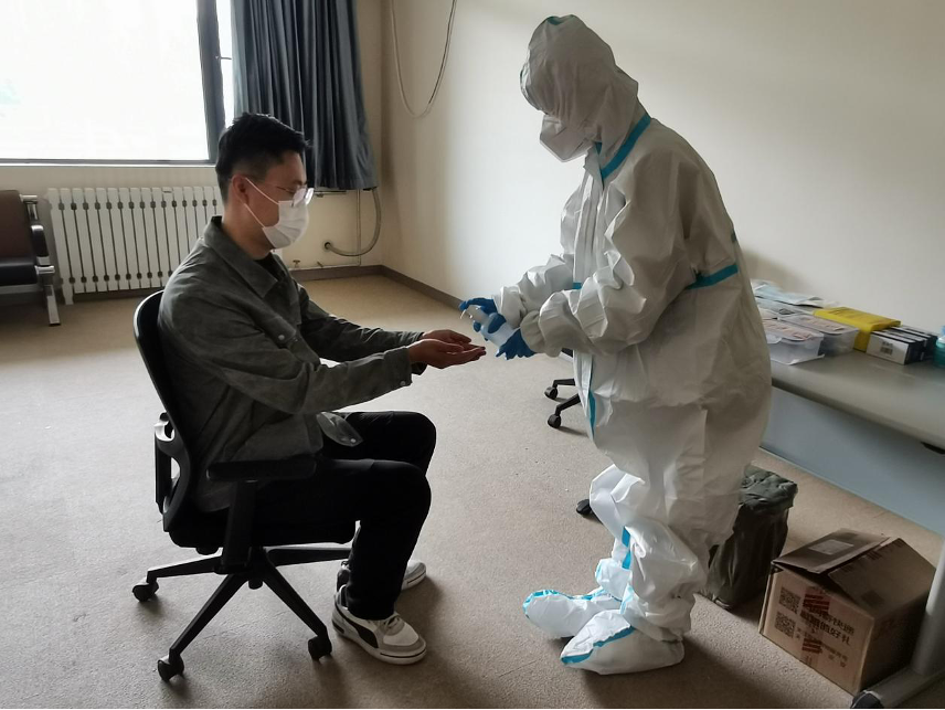(三)在体温异常教工进行体温测量时,联络员询问其和共同居住人员近14天旅居史及是否去过中高风险地区,并做好记录。