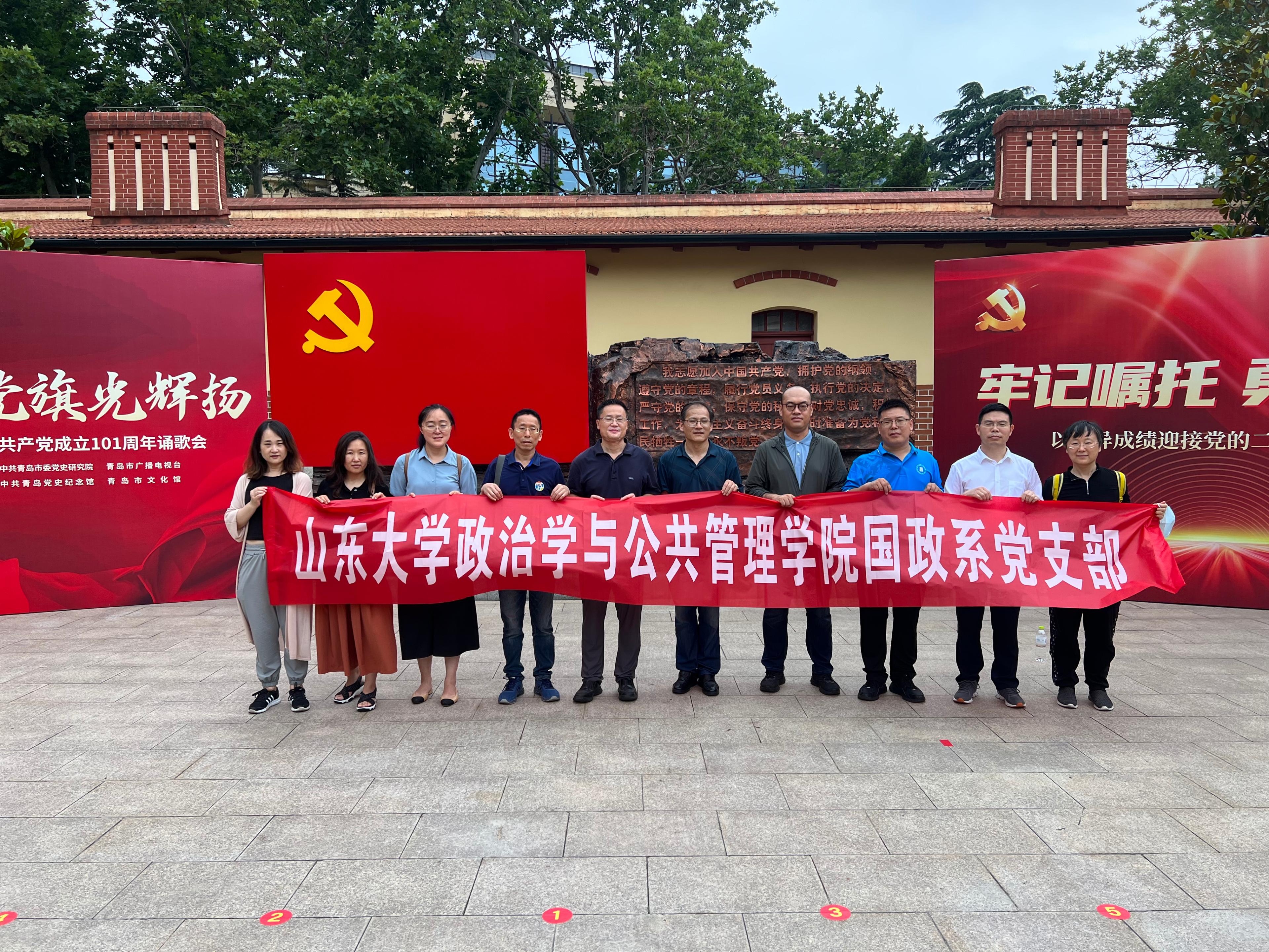 在庆祝中国共产党成立101周年之际,为了教育党员牢记使命,不忘初心,砥砺前行,7月6日,国际政治系党支部一行前往青岛市党史纪念馆开展“参观党史馆 传承红色情”主题党日活动。场馆陈列的大量文献资料、历史图片和实物展品,无声地讲述着青岛党组织早期不平凡的斗争历程,革命先辈的大无畏革命精神深深地感染着每一位参观者,对广大党员是一次深刻的精神洗礼。党史馆参观结束后,作为此次活动的一个重要环节,全体党员站在鲜红的党旗下,重温入党誓词,追忆入党初心。大家纷纷表示,一定传承好红色基因,将革命先辈的无私奉献精神发扬光大,努力工作,砥砺奋进,以优异成绩迎接党的二十大胜利召开。