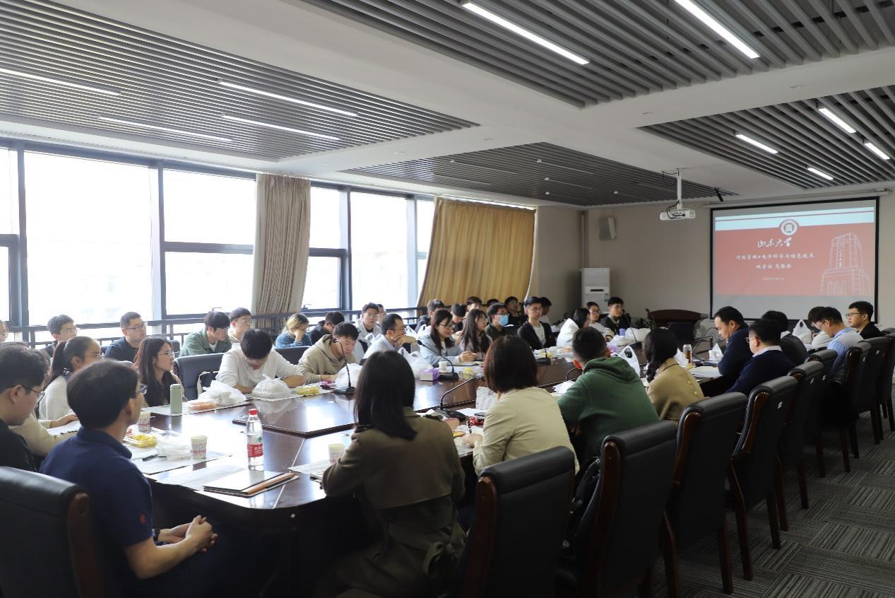 2021、2022级行政管理+电子科学与技术双学位班(简称“公信双学位班”)导师见面会于华岗苑南楼四楼中厅会议室举行。本次见面会由学院党委副书记马桂兰主持,学院常务副院长马奔、公共管理系部分教师及学生辅导员出席此次见面会。