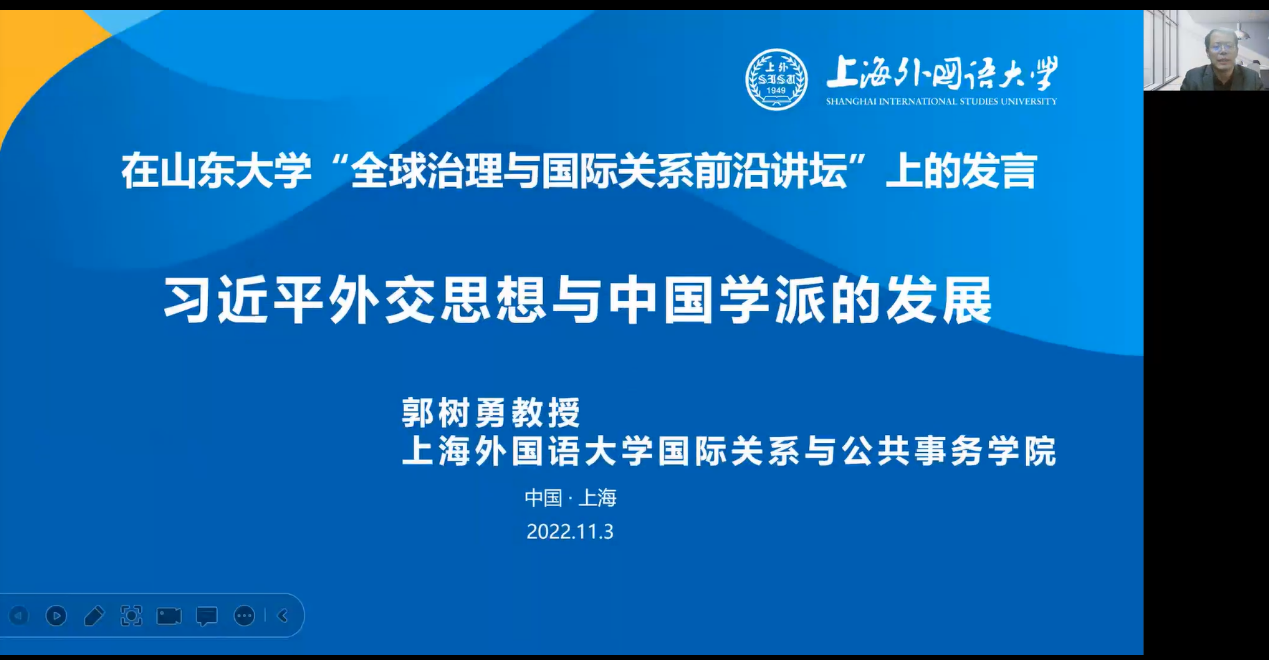 2022年11月23日与12月3日,“全球治理与国际关系前沿讲坛”第三、四期于线上成功举办,中国人民大学国际关系学院宋伟教授与上海外国语大学国际关系与公共事务学院院长郭树勇教授分别带来精彩讲座。av视频