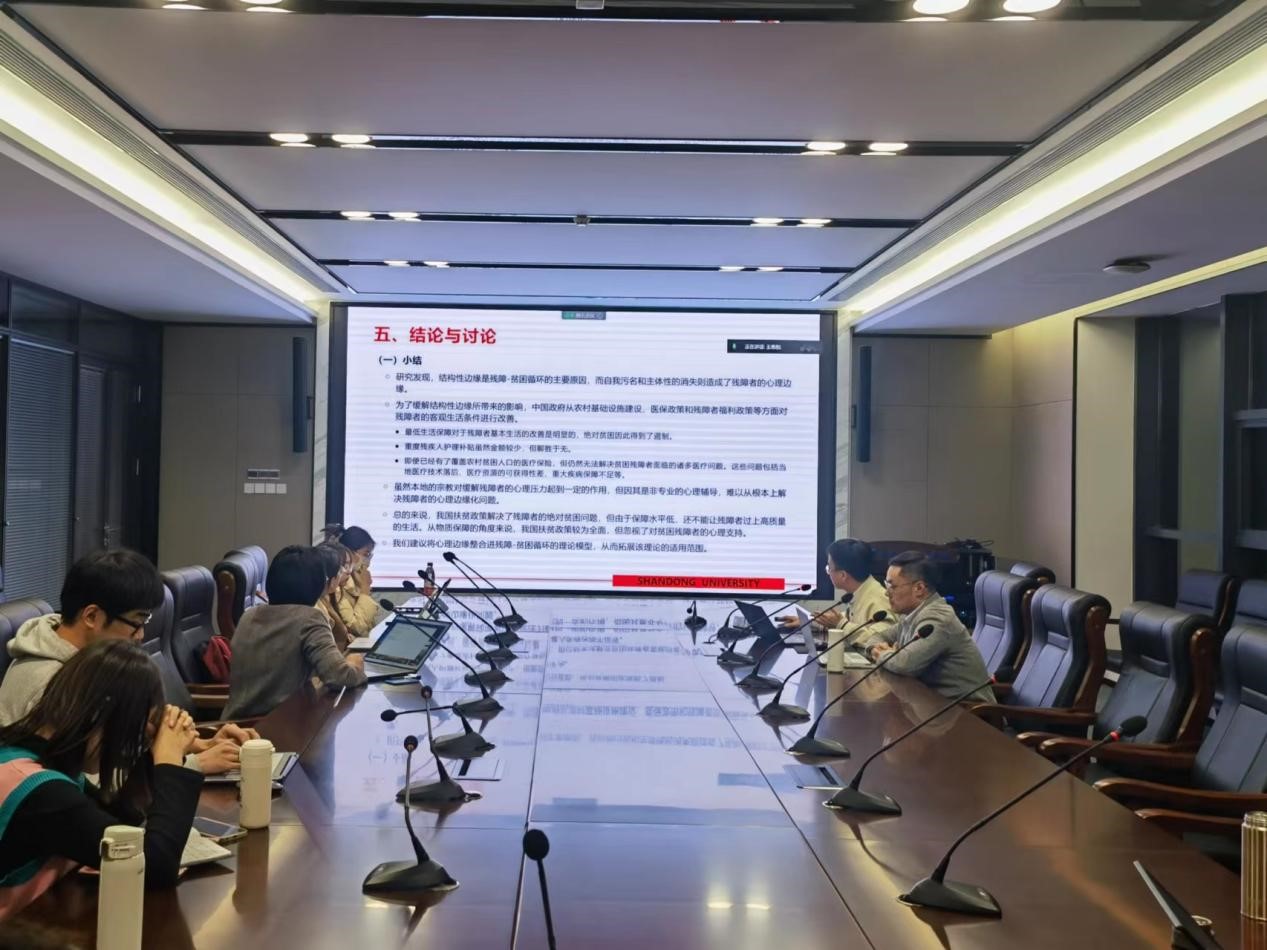 讲座伊始,陈仁兴指出,残疾人群体是反贫困工作中值得关注的重点人群。针对当前相关研究中经验数据、纵向数据、定性研究不足等短板,该研究基于云南省怒江州村庄的深入访谈对贫困与残疾之间的互动机制进行了探讨。他指出,结构性边缘与心理边缘是造成“残疾-贫困”循环圈的主要原因,正式与非正式支持是打破这一循环的重要手段。随后,陈仁兴根据研究结果,进一步提出相应的政策启示,并对未来研究展望进行了讨论。