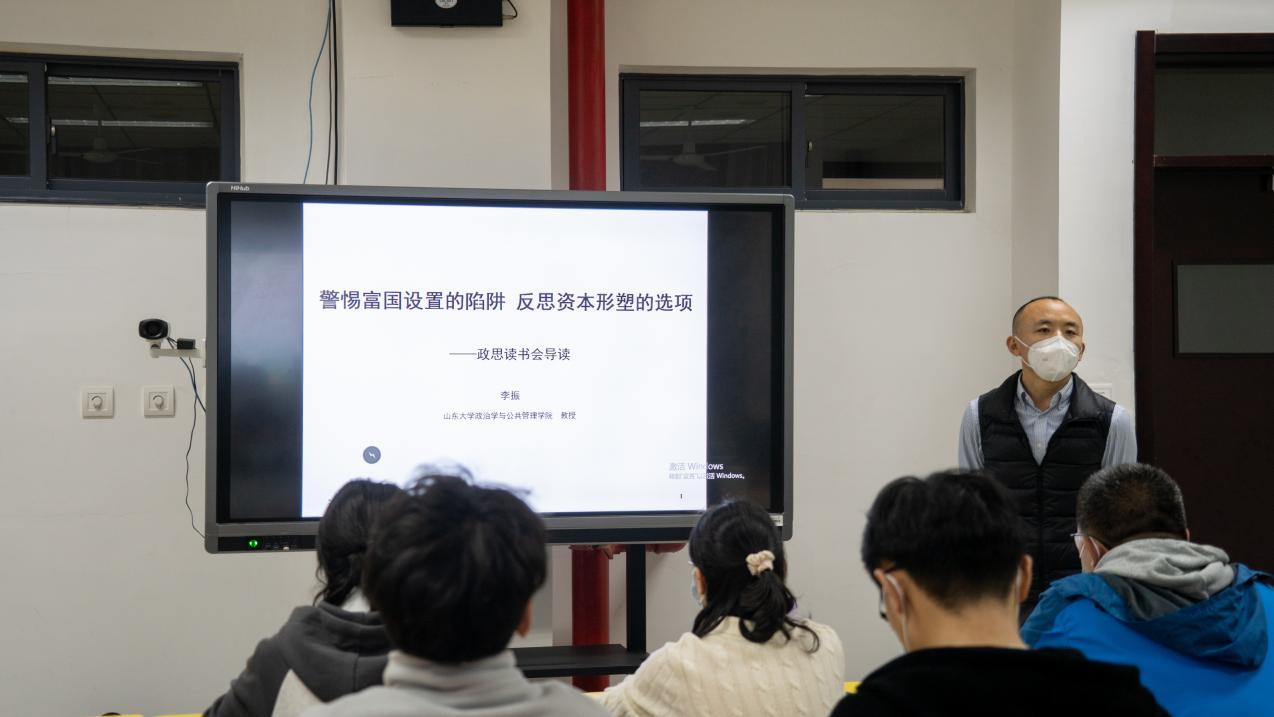 政治学系系主任李振教授主讲,学院各年级三十余名学生参加读书会。