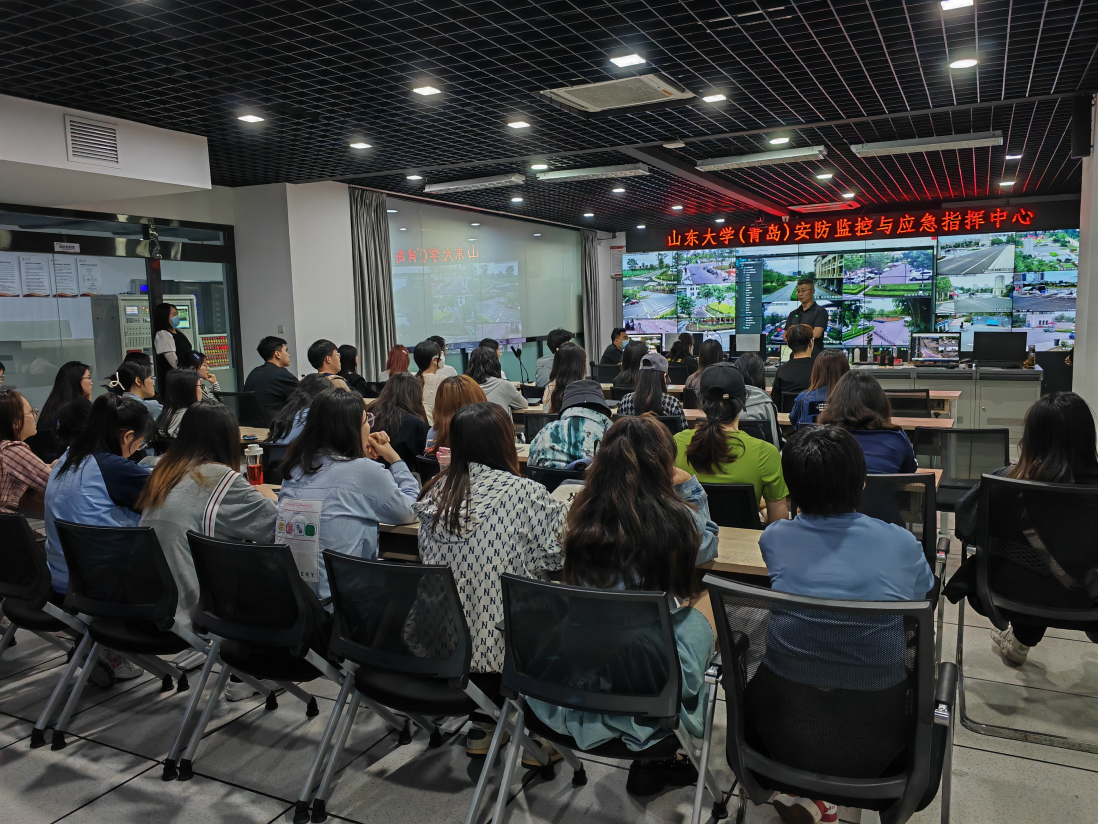 (青岛)安防监控与应急指挥中心开展交流学习。青岛校区党工委保卫部李修荣部长等校区党工委保卫部、学生工作部(处)相关负责人及学院51名同学参加了活动。