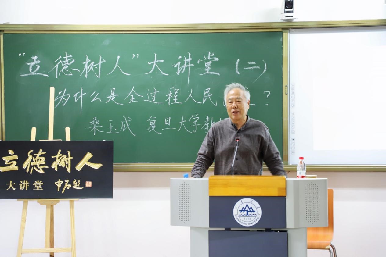 新时代美德书屋暨本本优本系列活动之立德树人大讲堂第二期于振声苑举办,讲座主题为“为什么是全过程人民民主”。本次讲座由复旦大学国际关系与公共事务学院教授桑玉成主讲,av视频