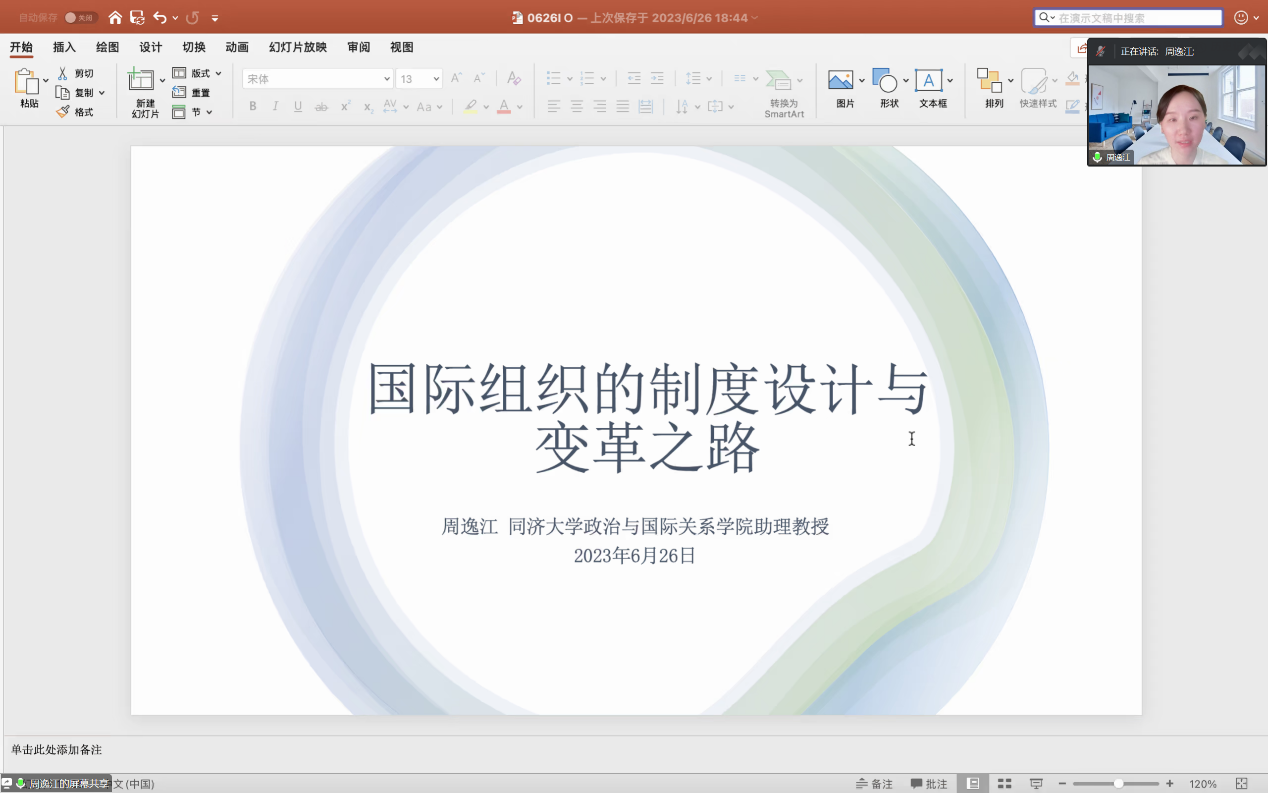 2023年6月26日,山大国政博士生学术工作坊第六期于线上成功举办。同济大学政治与国际关系学院助理教授周逸江以“国际组织的制度设计与变革之路”为题进行了精彩讲座。av视频
