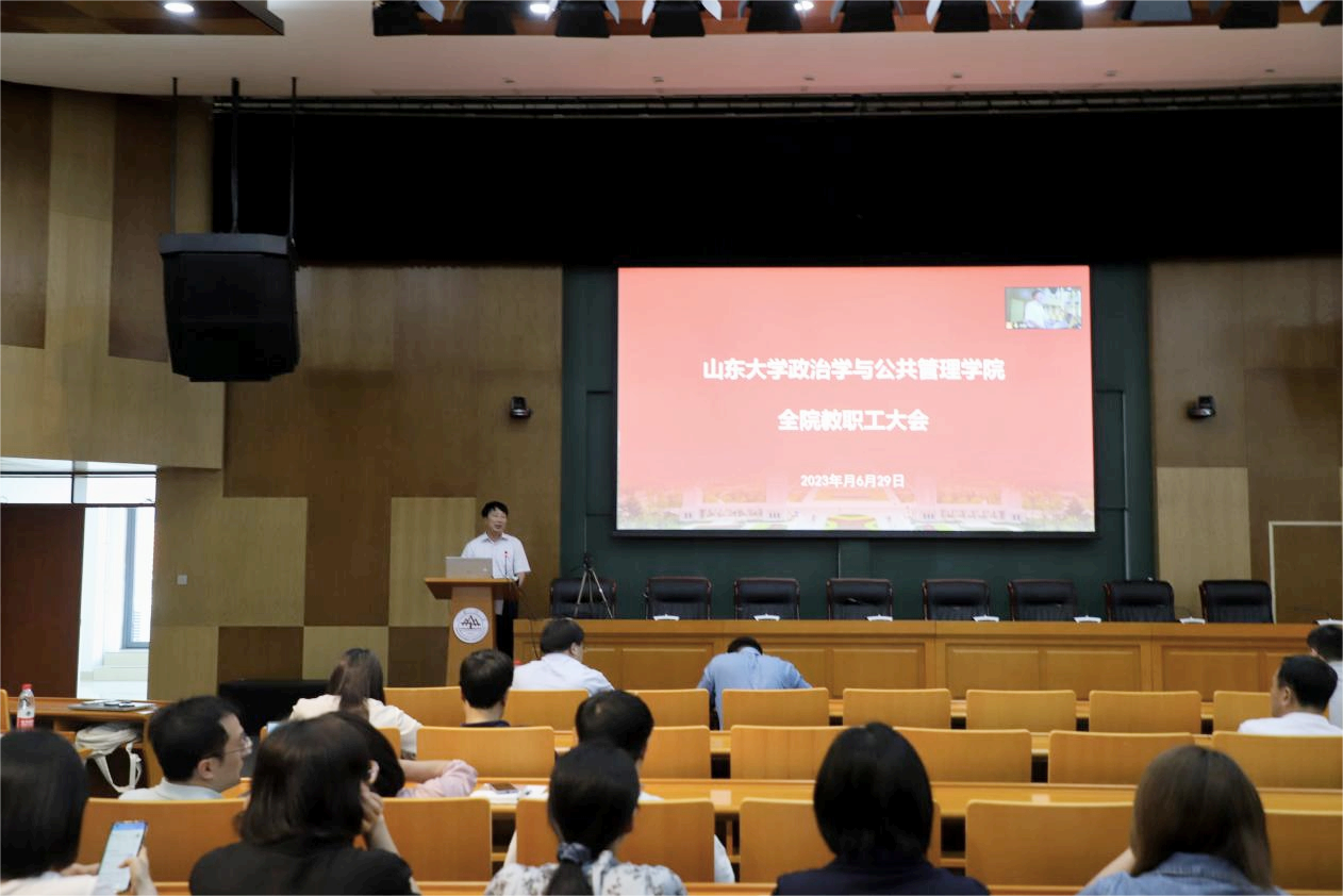 教师职务标准修订工作实施方案》,并对学院下半年工作进行部署。他强调,学院以开展学习贯彻习近平新时代中国特色社会主义思想主题教育为契机,深刻把握“学思想、强党性、重实践、建新功”的总要求,以高度的政治自觉和强烈的使命担当系统梳理制约学院高质量发展的“问题树”,并从拔尖创新人才和国家战略人才培养、一流的政治学与公共管理学科建设、师资队伍建设、有组织的科研、服务国家和区域经济社会发展能力、国际化水平提升、学院治理体系和治理能力等方面部署下一步学院重点工作。学院要把握发展之势,在推动发展上再发力,充分利用暑期时间从战略的角度统筹谋划“七大战略提档升级”和提出针对性举措。希望全院教职工坚持劳逸结合,在各自岗位上守正创新,踔厉奋发,坚定高质量发展的信心和决心,以团结奋斗的精神全力推动学院各项工作提质增效、提档升级,为学校世界一流大学建设做出更大贡献。