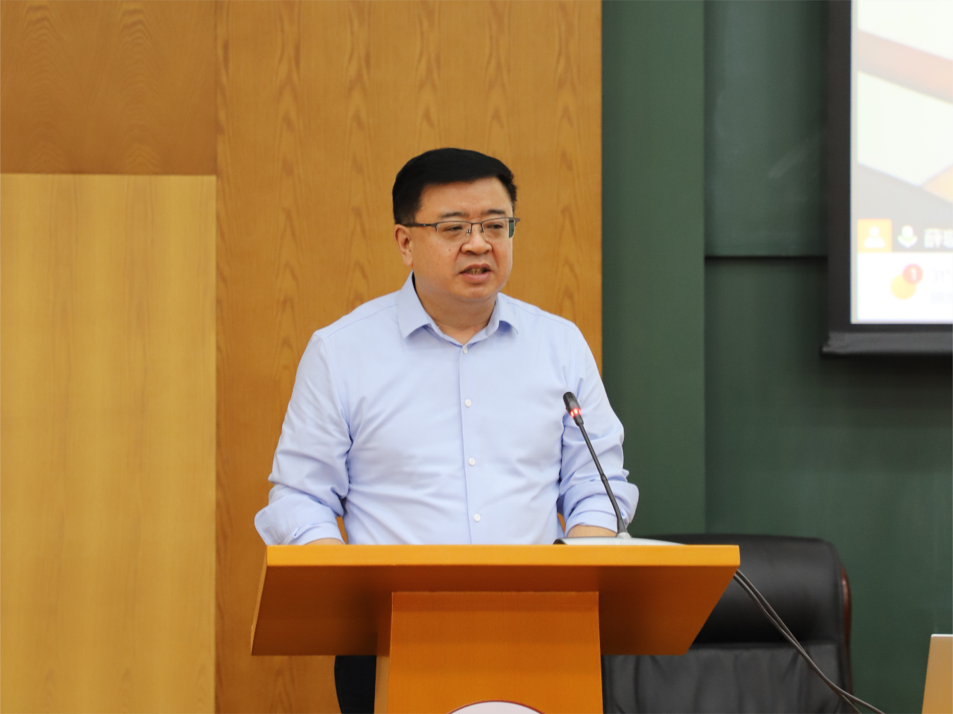 全体教职工参加会议,会议采用线上线下相结合的形式举办。学院党委书记盖玉强主持会议。