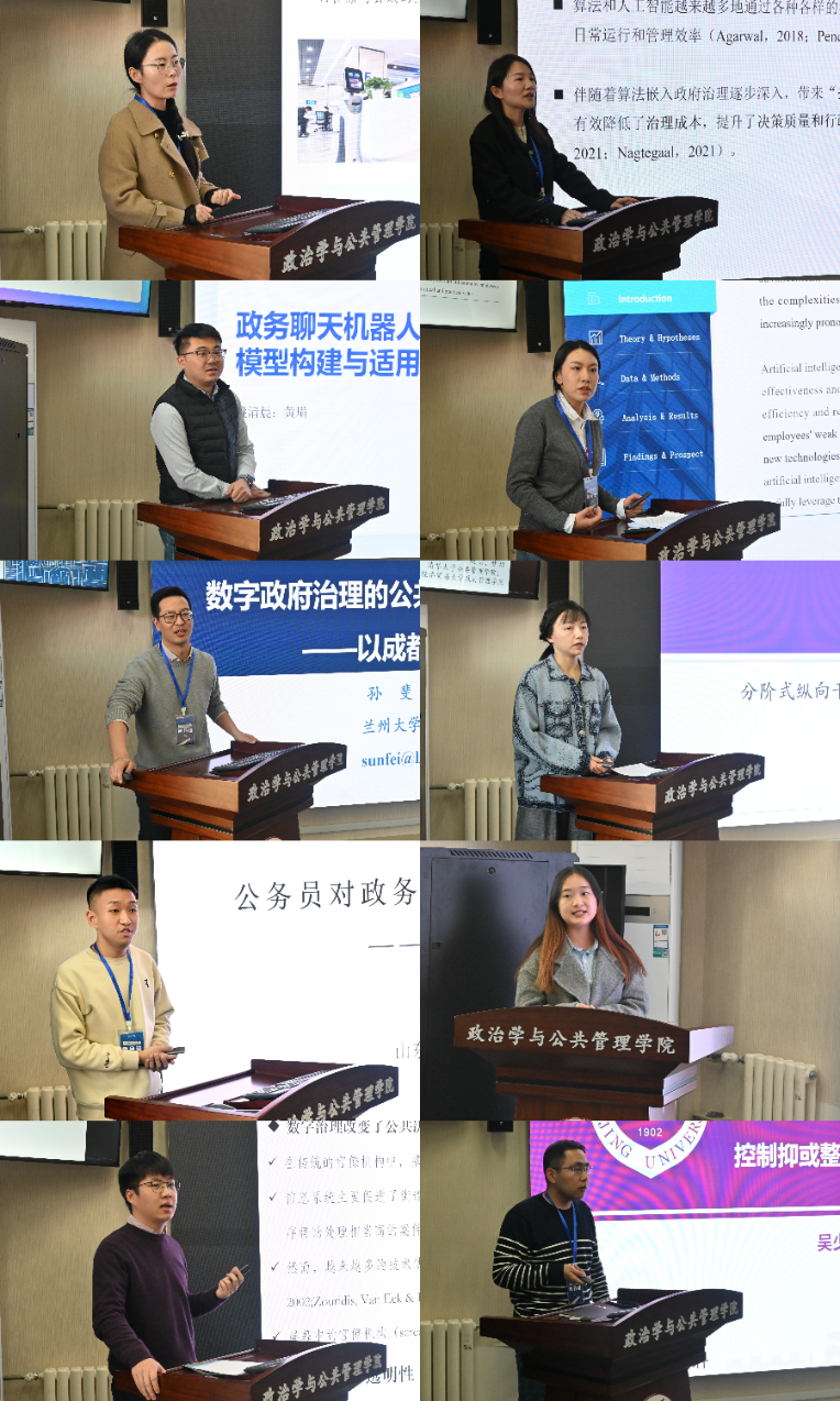 研讨会讨论内容丰富,涵盖公共服务中数字治理和人工智能应用的各个方面。在上半场的讨论中,论文汇报人围绕自动化决策、公共部门中的算法透明与公众信任、政务聊天机器人应用评价模型与构建、公共部门应用AI的驱动因素、数字政府的透明度等议题进行了分享和对话,上海交通大学国际与公共事务学院张攀、香港科技大学(广州)社会枢纽许珂维、厦门大学公共事务学院李德国、电子科技大学公共管理学院张会平、av视频