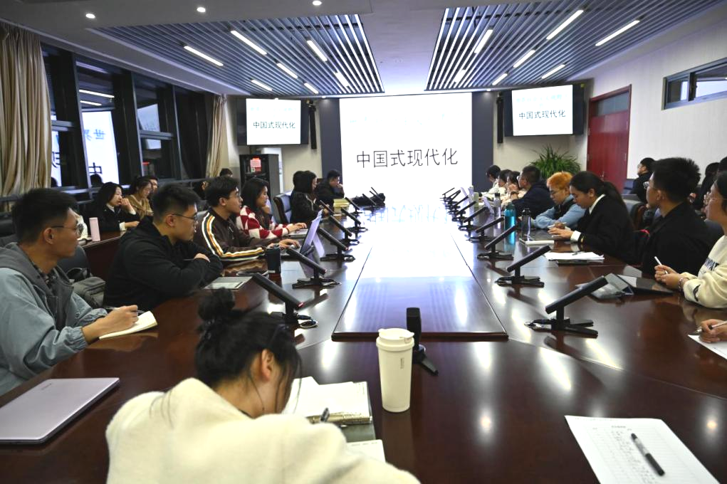 在题为“世界社会主义视野下的中国式现代化”的讲座中,蒲国良教授围绕主题分四部分进行了讲述。首先蒲国良教授追溯并详细介绍了世界社会主义的开端——《乌托邦》,进而讲解了什么是社会主义,以及社会主义的几个基本原则。其次,蒲国良教授论述了中国社会主义现代化的选择。再次,蒲国良教授重点阐述了“中国式现代化的推进与拓展”。最后,蒲国良教授阐述了“中国式现代化对世界社会主义的意义”。在互动阶段,现场的同学针对讲座内容进行提问,蒲国良教授一一做了耐心解答,同学们均获益良多。