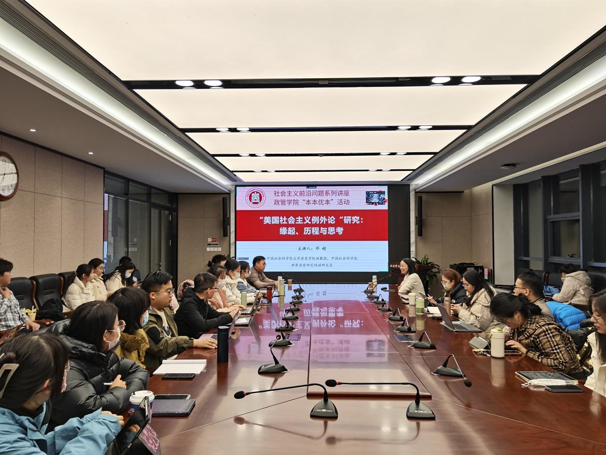 “本本优本”活动暨社会主义前沿问题系列讲座于青岛校区华岗苑南楼536会议室举办。本期讲座以“‘美国社会主义例外论’研究缘起、历程与思考”为主题,由中国社会科学院大学历史学院副教授、中国社会科学院世界历史研究所副研究员邓超主讲。av视频