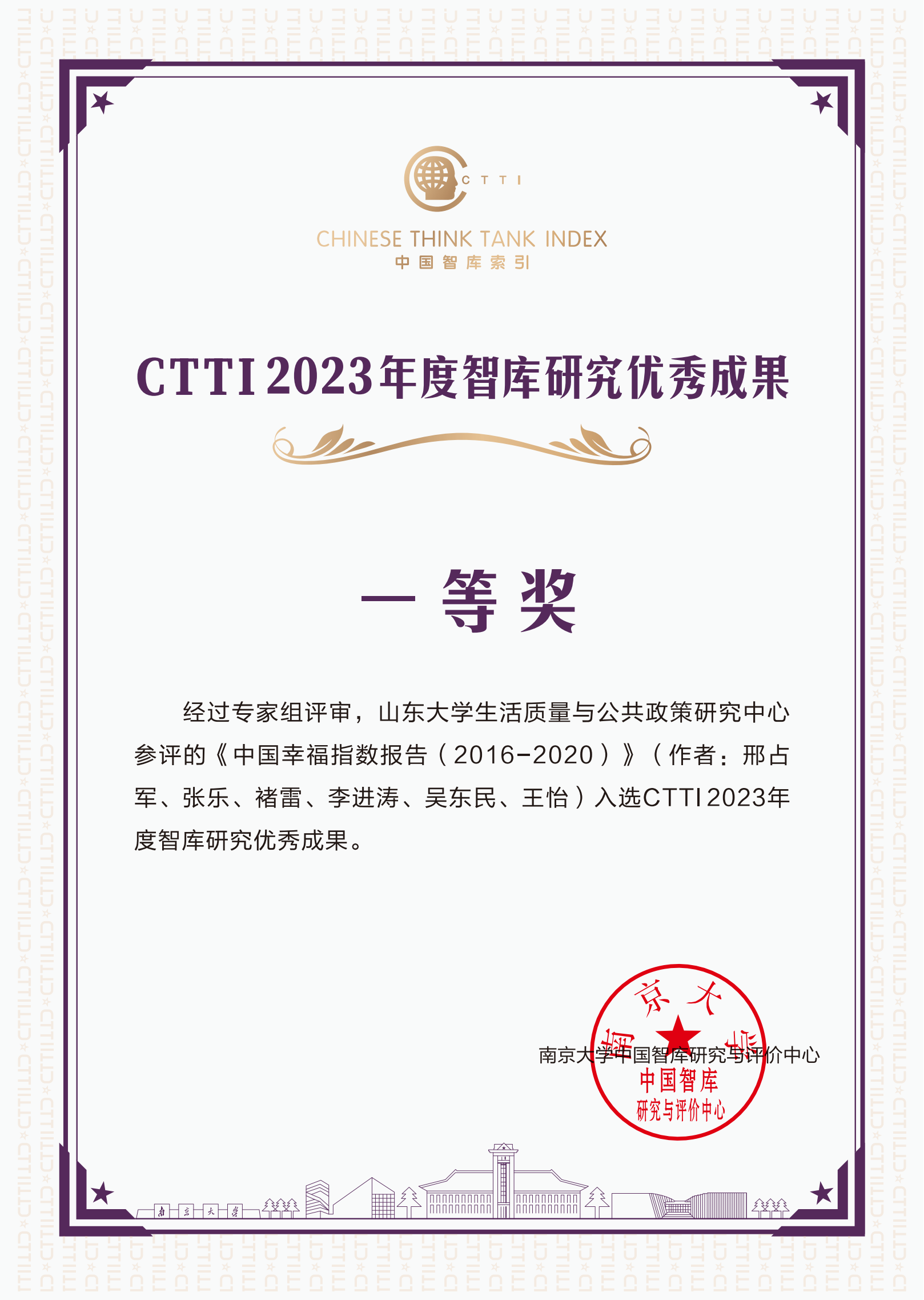 生活质量与公共政策研究中心于2022年入选中国智库索引(CTTI)来源智库。