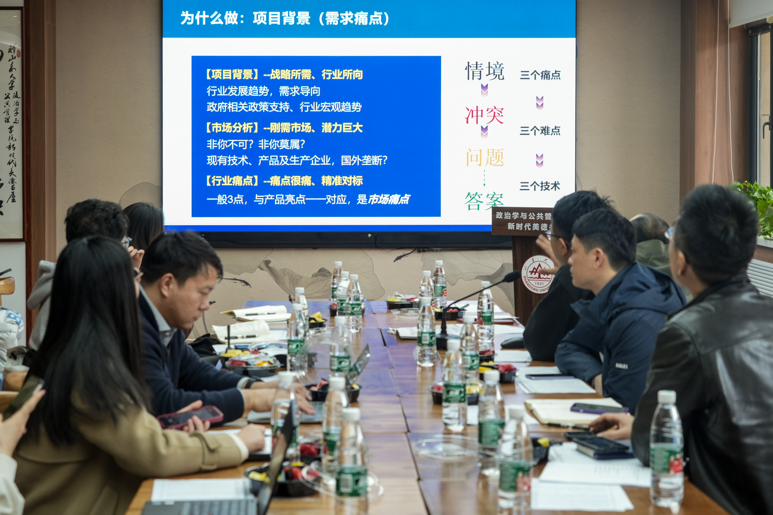 团委创新创业工作负责人南东周老师。辅导会伊始,南东周老师首先对“挑战杯”和“中国”两大赛事进行了介绍,包括参赛资格、赛事流程、赛道设置、评审规则等基本规定,并从评审专家角度分析了两大赛事的定位和侧重点。随后,南老师从“怎么找项目”入手,为大家提供思路灵感,并围绕项目进行深入分析。他强调对市场需求痛点的把握,指出如何解决当前行业痛点是项目的关键,并且应当据此提出直击痛点的解决方案,回答好“怎么办”的问题。他认为,队伍应当从竞品分析、商业案例和行业认可三个方面对项目进行评估,回答“做得好不好”的问题。接着他引出团队介绍和商业分析两大模块,回答“为什么做得好”和“具有何种价值”的问题。南老师的讲解框架分明、条理清晰,使大家对两大赛事有了更全面的认识。