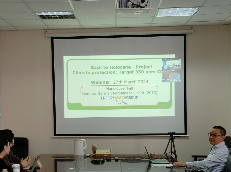 讲座伊始,Hans-Josef Fell教授点明,全球变暖已经敲响最后的警钟,人类生存和发展面临着严峻挑战,因此亟需就降低温室气体排放作出部署来为人类找到一条“全新世”的道路——转型迈向使用100%可再生能源零排放经济体和绿色碳汇。这不仅能够保持粮食和能源供应,更有利于世界经济。随着开发太阳能、风能等再生能源的成本不断下降,100%使用可再生能源已非遥不可及。Hans-Josef Fell教授也就如何实现使用100%可再生能源提出了技术建议和政策建议。盛力教授认为,中国一直在积极推动绿色发展和低碳发展,相关研究将有助于我们全面了解可再生能源的来源和发展应用等情况,具有重要的现实意义。