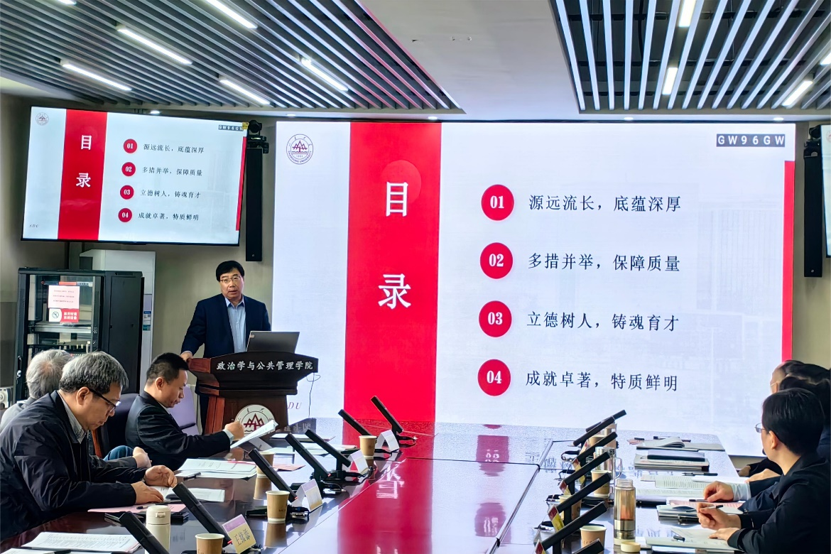 刘昌明汇报了政治学一级学科学位授权点的建设情况,对政治学学科的历史概况、发展路径、人才培养和特色成就等进行了详细汇报,向专家组展示了av视频