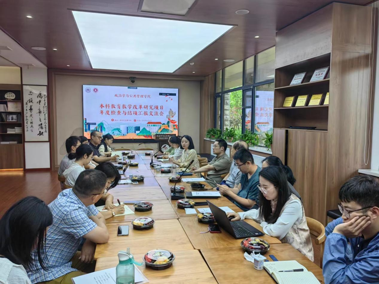 随后进行2023年度项目年度检查汇报,滕玉成、李昕蕾、李爽、褚雷、王薪喜等各项目负责人分别汇报了“新背景下公共部门人力资源管理教学模式2.0版构建:困境与路径——国家一流专业建设视角”、“课程思政视域下国际关系理论教材建设的改革与创新研究”、“新文科背景下《政治心理学》实验教学的探索与实践”、“双重理性互嵌的通识教育路径建构探究——以《社会心理与人生幸福》为例”、“新文科建设背景下的‘问题-情境-互动’三位一体教学模式研究”等项目的研究进展,总结项目的前期开展情况以及取得的阶段性成果,并对项目的未来开展情况进行规划。