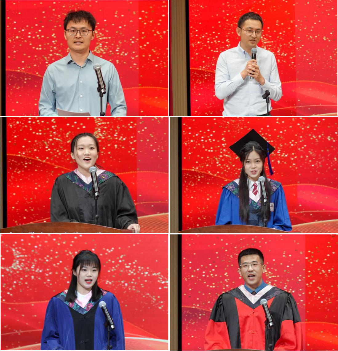 教师代表刘华兴老师为毕业生送上殷切期望与嘱托。他讲到,大学生活让我们学会了如何独立思考,如何与人合作,如何面对挫折与失败。他期望毕业生们都够践行君子之道,在这个多元化、复杂化的社会中,能够时刻保持清醒的头脑和坚定的信念,在风雨中砥砺前行;无论身处何地、从事何种工作,都要保持对知识的渴望与追求;在面对生活的起起落落时,保持一颗平和的心态,自律慎行,不忘初心,勇敢地面对挑战,积极地追求幸福和成功,保持那份热爱,奔赴下一场山海。