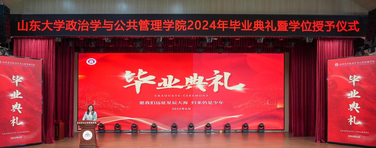2024届毕业生毕业典礼暨学位授予仪式正式开始。校友代表、现任清华大学公共管理学院党委研究生工作组组长王红帅,结合自己与母校共度时光中的所思所感,表达了对全体毕业生的殷切期望,并为即将踏上人生新征程的学弟学妹们献上了最诚挚的祝福。随后本科生代表张亦诺、硕士研究生代表王洪超、MPA代表李晓雅和博士研究生代表阮银萍先后发言,分享在校的点点滴滴,并表示在未来的路上,将时刻铭记学院与学校的谆谆教诲,带着母校的荣光,带着山大人的自信,以责任担当展现“知政为公,厚德笃行”的政管院训,以实际行动践行“学无止境,气有浩然”的理想信念,探索人生的无限可能。