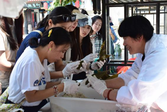 此外,党支部一行还参观了青之源谱牒文化空间,点击科技互动装置屏幕,探索自己姓氏的起源及其背后的传承故事,激发爱家爱国精神动力。时值中华传统节日端午节来临之际,同学们还在县衙广场上体验了包粽子的乐趣,感受传统文化的魅力。