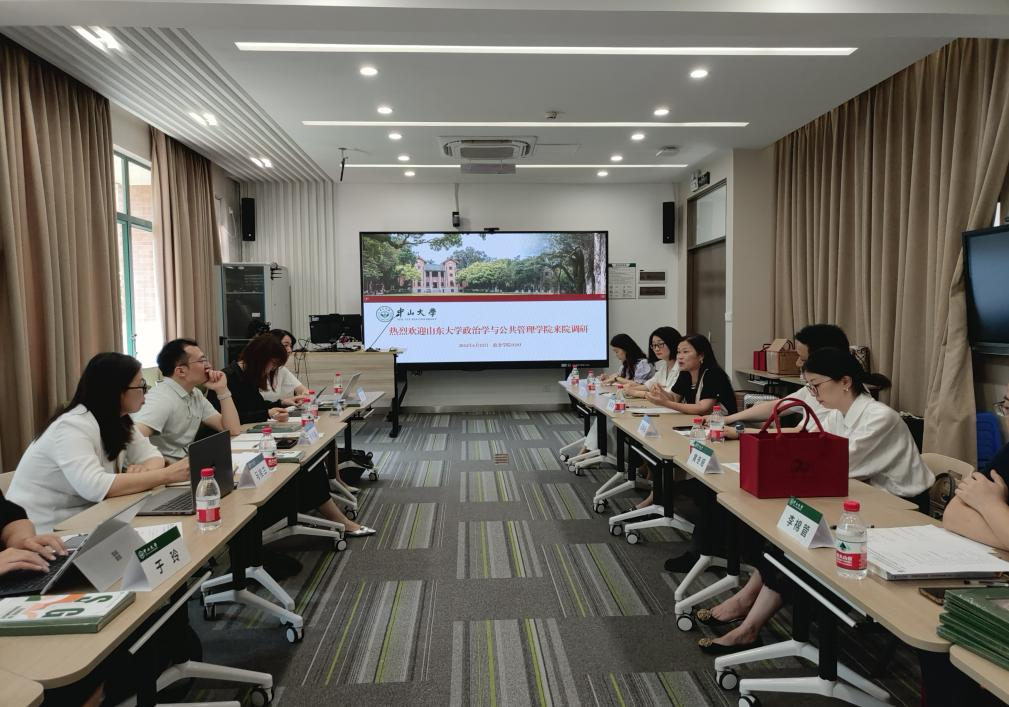 党委副书记马桂兰、副院长孙宗锋等一行6人赴中山大学政治与公共事务学院开展走访调研活动。中山大学政务学院院长谭安奎亲切接见调研团一行,副院长王秋石、副院长黄冬娅、党委副书记谭英耀等参与座谈。