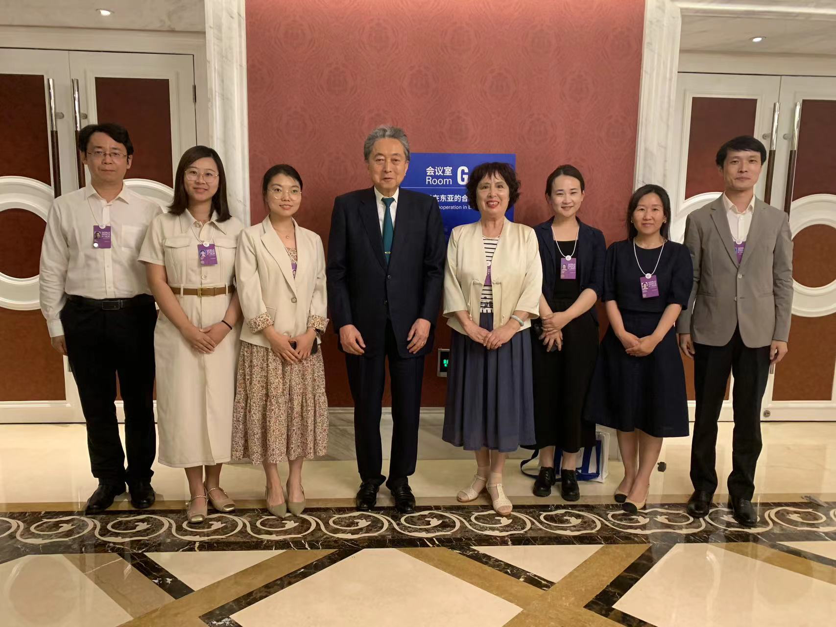 会议期间,日本前首相鸠山由纪夫会见了亚太所代表团成员。杨鲁慧向鸠山先生介绍了av视频