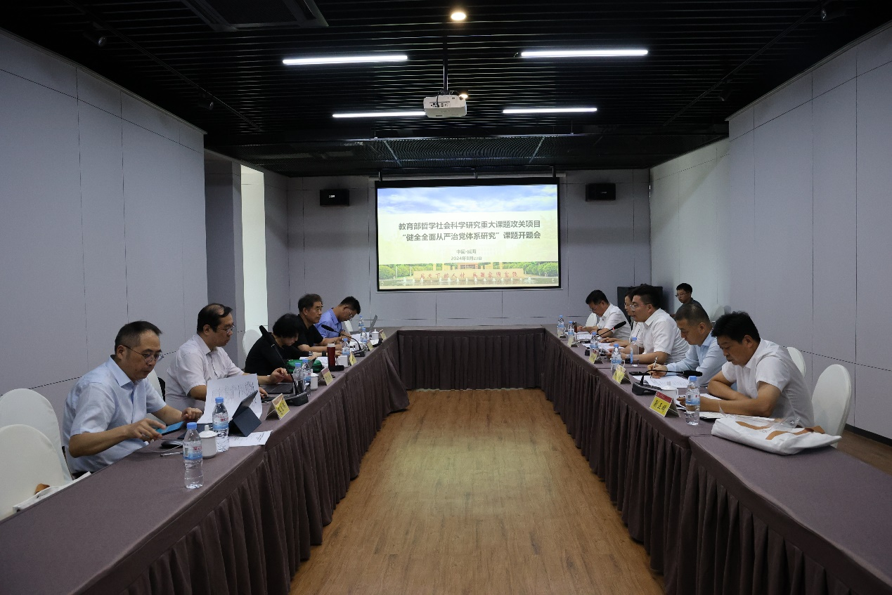 在专家评阅环节,复旦大学贺东航教授建议课题组进一步明确健全全面从严治党体系的核心内涵,从宏观上搭建起整个课题的“四梁八柱”,深化健全全面从严治党体系的运行机制,从制度、组织、领导等方面细化全面从严治党体系的优化路径,最终形成健全全面从严治党体系的自主学术话语。北京大学金安平教授建议课题研究进一步凸显问题意识,要围绕“从严”二字展开破题,系统回答中国共产党管党治党为什么要从严、从严的基本内涵与实践路径等问题,理清全面从严治党与党规党纪之间的关系,党内监督与党外监督的关系。上海大学高立伟教授建议课题组对新时代以来健全全面从严治党体系的核心概念做出精确区分,同时还要注意区分作为健全全面从严治党的“大体系”与组织体系、教育体系、责任体系等“小体系”之间的关系,另外也要对全面从严治党的党内法规做出细致梳理,在此基础上找到体系建立的规律与问题。中国人民大学唐皇凤教授建议课题组通过深度访谈调查的方式,加强健全全面从严治党体系的实证研究,进一步探求健全全面从严治党体系中五个子体系之间的内在关联,可以考虑增加价值理念体系作为健全全面从严治党的子体系。山东师范大学商志晓教授建议课题组通过提交内参报告、发表论文、撰写著作等多种方式呈现研究成果,持续提升各章节的标题设计和语言表述的精准性、精细化,确保观点论述的逻辑严密。山东省高校当代中国马克思主义研究院院长、山东师范大学原党委书记商志晓教授担任专家组组长。