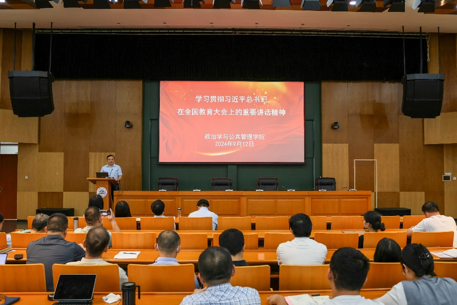 于青岛校区华岗苑南楼五楼报告厅召开全院教职工大会,第一时间传达学习习近平总书记在全国教育大会上的重要讲话精神和全国教育大会精神。av视频