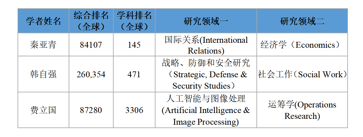 秦亚青教授、韩自强教授、费立国副研究员入选2024全球前2%顶尖科学家“年度科学影响力”榜单。该榜单基于Scopus数据库的引用数据系统分析,以被引数、H指数等6种综合指标,根据“年度影响力”从全球近700万名科学家中遴选出世界排名前2%的科学家。