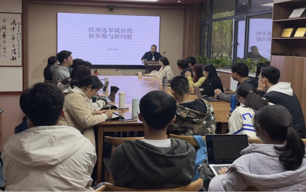 讲座伊始,林德山教授介绍了在百年未有之大变局和世界大选年背景下欧洲选举政治面临的许多新形势与新问题。之后,林德山教授分别以法国、德国、英国、意大利、荷兰等国近年的选举为例,为大家进行了详细阐述,并分析了欧洲选举政治出现这些新形势与新问题的原因。林德山教授着重讨论了影响欧洲政党稳定性的关键要素。他认为,战后西欧政党结构的稳定性首先体现在主流政党的政治共识和政治控制能力,而过去作为欧洲政坛最主要稳定性来源的这种控制能力正在失去。他还强调,民粹主义的挑战不只是民粹主义政党的崛起,更在于其思想和行为方式对整个西方社会,包括传统的主流政党和精英思想行为的影响。