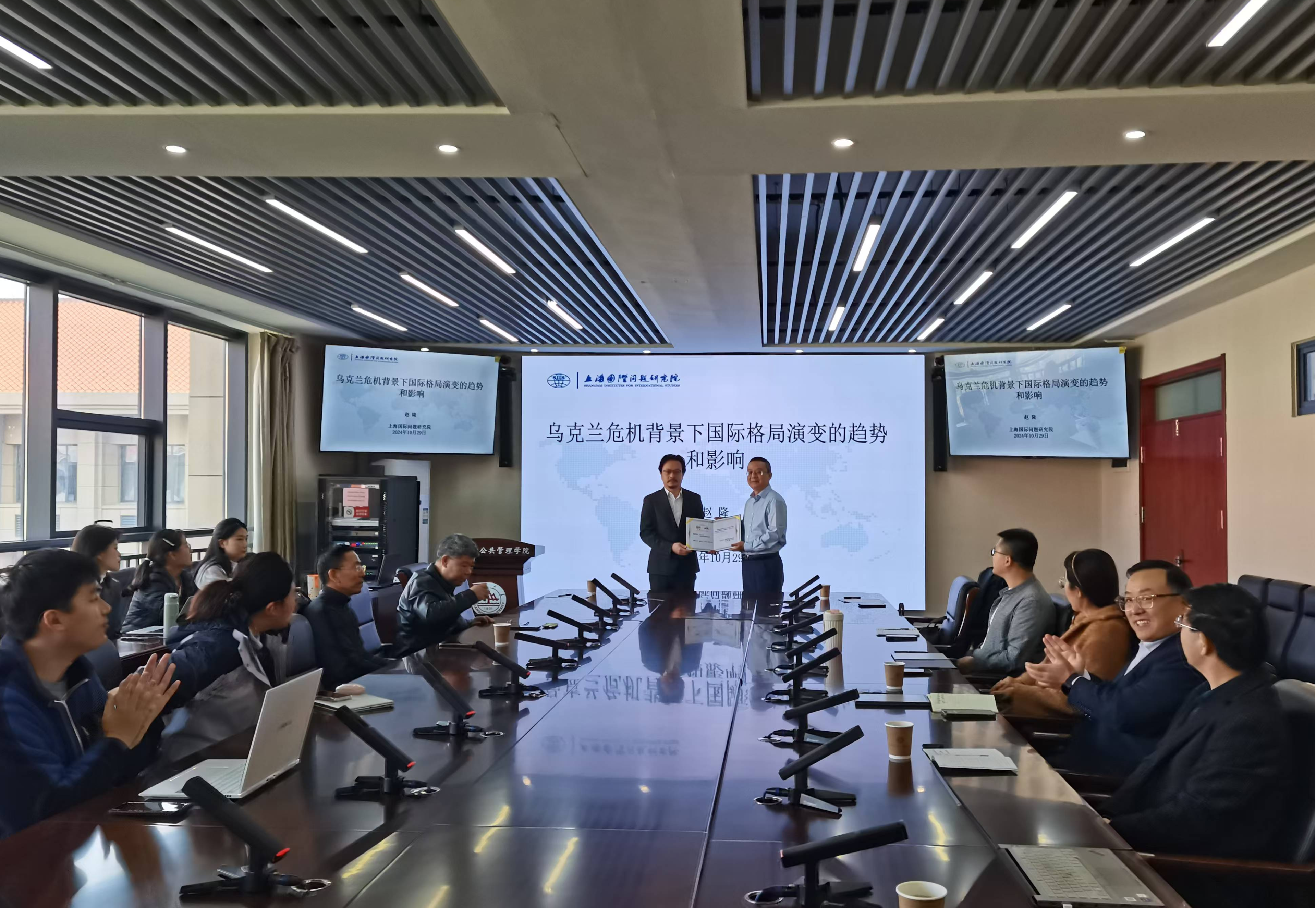 公共安全研究院、中国—上海合作组织经贸学院联合主办的“合作与发展”系列讲座第十九期在华岗苑南楼四楼中厅会议室顺利举办。本期讲座主题为“乌克兰危机背景下国际格局演变的趋势与影响”,由上海国际问题研究院全球治理研究所副所长赵隆主讲。av视频