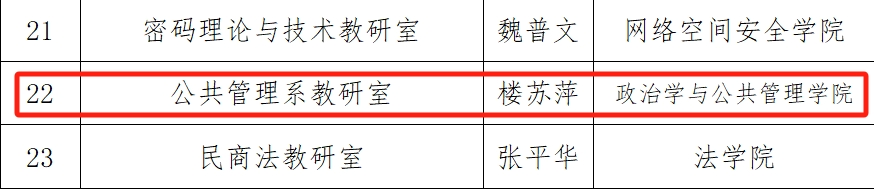 优秀基层教学组织负责人”。这是继2022年度公共管理系教研室荣获“av视频