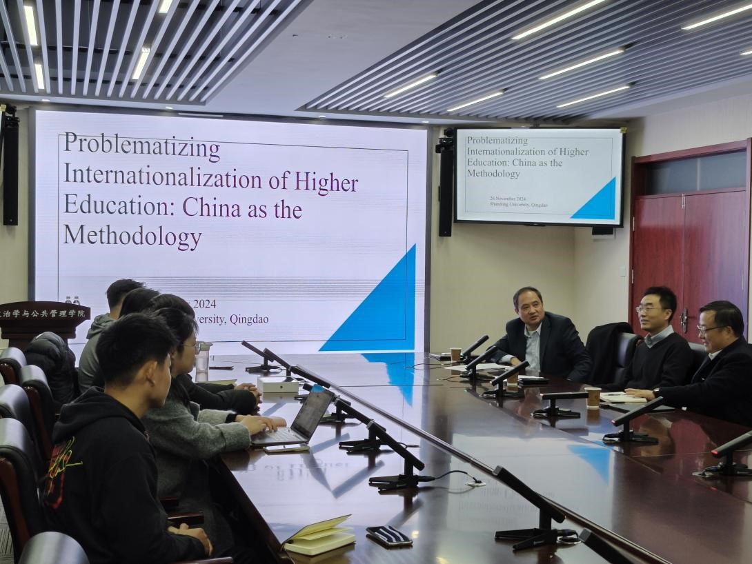 公共治理研究院承办的鳌山公共事务论坛系列讲座在华岗苑南楼成功举办。本次讲座以“高等教育国际化的问题化:以中国作为方法论”为主题,特邀加拿大多伦多大学安大略教育研究院博士、加拿大约克大学亚洲研究中心署理主任查强教授担任主讲人。av视频